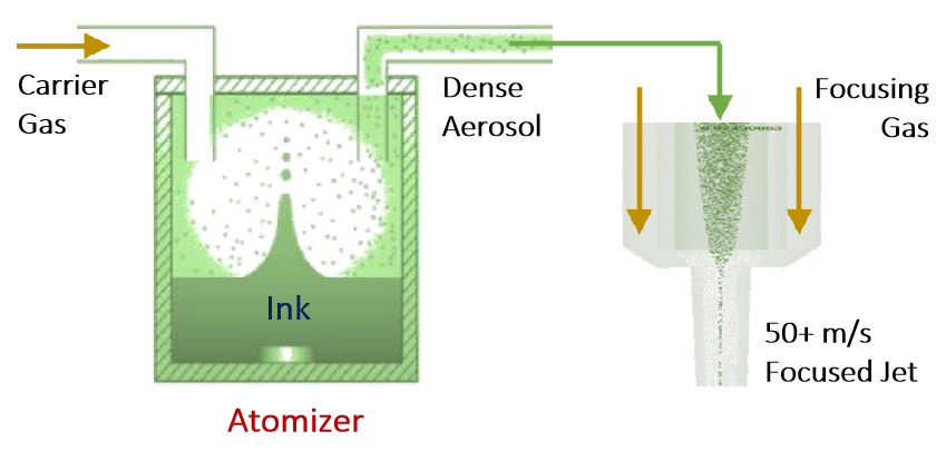 Optomec 是Aerosol Jet 氣溶膠噴射技術(shù)的擁有者。氣溶膠噴射系統(tǒng)使用新的技術(shù), 能夠在大容量和多種使用模式下打印微米級電子產(chǎn)品,包括在2D或3D表面上打印電路或組件。